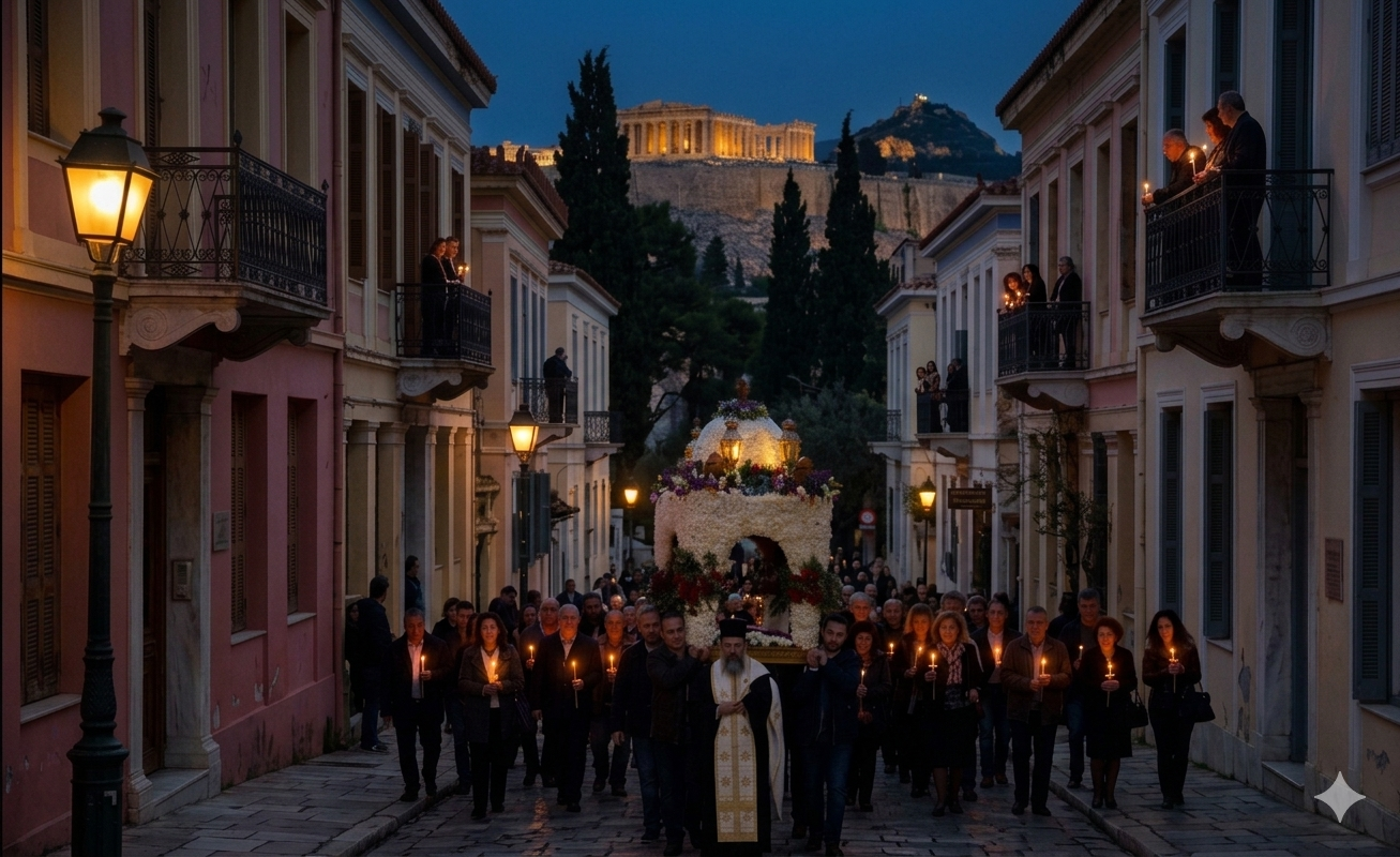 The Epitaph procession here moves through the quaint streets of Plaka, accompanied by candlelight and hymns, making it one of the most beautiful and evocative experiences in the city.