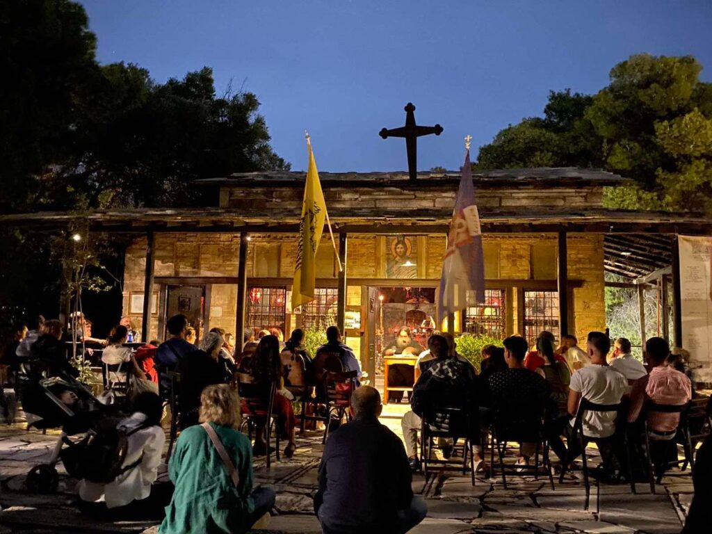 Set in a lush forest on the slopes of Mount Hymettus, the procession unfolds in a tranquil natural environment. The combination of daylight, greenery, and tradition creates a rare atmosphere.